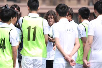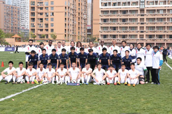 勞倫斯體育學(xué)會主席埃德溫•摩西、勞倫斯大使世界級教練法比奧•卡佩羅、世界著名運動員卡萊斯•普約爾、路德•古力特、路易斯•薩哈、阿萊克•涅莫夫、戴利•湯普森,攜手滬足壇名宿孫雯、白莉莉、浦瑋、成耀東、孫吉、謝暉和劉軍,組成的“勞倫斯巨星隊”同“小囡足球隊”展開一場別開生面的校園足球賽。勞倫斯巨星親自示范球技,悉心指導(dǎo),在原世界足球小姐孫雯等中國足壇名將的帶領(lǐng)下,“小囡足球隊”進行了賽前熱身訓(xùn)練,隨后,由巴塞羅那前隊長——著名球星普約爾開球,宣布比賽正式開始。薩哈、孫雯、浦瑋、白莉莉、謝輝、孫吉、劉軍等人悉數(shù)上陣,與同學(xué)們一一過招。