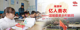 2015年1月30日,由恒源祥商超發(fā)起的“億人善衣”活動(dòng)正式啟動(dòng)。這是是恒源祥商超緊扣“公益+大愛”全力打造持續(xù)性的消費(fèi)型公益模式,實(shí)現(xiàn)一對(duì)一實(shí)名制買捐贈(zèng)服務(wù)?;顒?dòng)前期“億人善衣——溫暖最美鄉(xiāng)村教師”活動(dòng)攝制組從上海出發(fā)來(lái)到相隔2780公里外的云南省南澗縣樂秋鄉(xiāng)的麻栗小學(xué)及 開展公益活動(dòng)前期拍攝工作?;顒?dòng)獲得云南省南澗縣婦聯(lián)及云南省婦女兒童基金會(huì)大力支持及贊許。