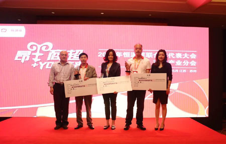 結(jié)合恒源祥商超產(chǎn)業(yè)去年銷售情況,為徐州市織天下針織品有限公司、杭州觀瀾服飾有限公司及泰州華新針織有限公司頒發(fā)了2015年度優(yōu)秀經(jīng)銷商頒獎。恒源祥商超產(chǎn)業(yè)2015年度市場開拓獎由無錫市百勢紡織品有限公司、杭州聚果電子商務(wù)有限公司、天津世紀(jì)昊陽服飾有限公司、杭州聚果電子商務(wù)有限公司和上海源庸服飾有限公司獲得。