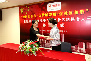 2011年9月20日 集團黨委與寶興社區(qū)干部及社區(qū)納保老人“三結對”簽約儀式。