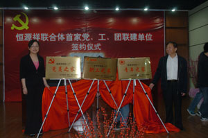 2009年4月30日 恒源祥聯(lián)合體黨工團首家聯(lián)建單位簽約儀式在無錫恒源祥絨線一廠舉行。