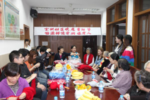 2012年10月22日 重陽節(jié)前夕,集團青年黨員、青年志愿者們?yōu)閷毰d社區(qū)的“納保”老人編織愛心圍巾,送上節(jié)日祝福。