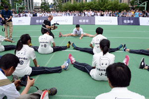 2014年6月9日 集團邀請劉翔等明星為格致中學的學生開展體育指導課。