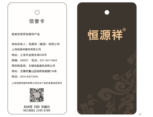 該數(shù)碼已查詢2次,您所查詢的是恒源祥 “服飾”系列正品標(biāo)識(shí),感謝您的使用!