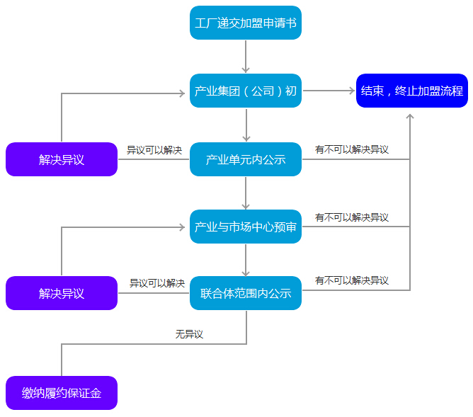 加盟流程:由初審、預(yù)審和復(fù)審等步驟組成。具體如下圖所示: