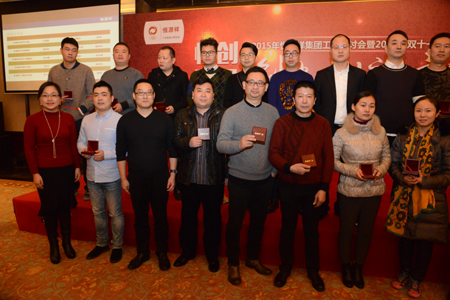 值得一提的是,本次研討會上還特地舉辦了“雙十一”慶功宴。集團在今年的“雙十一”取得了全網(wǎng)銷售額過3億的優(yōu)異成績,較去年增長翻了一番。為了表彰作出突出貢獻的優(yōu)秀電商團隊,集團邀請了各產(chǎn)業(yè)公司的電商代表出席慶功宴,集團總經(jīng)理陳忠偉致辭,并為優(yōu)秀代表頒發(fā)了紀念金幣予以表彰和鼓勵,也是希望借此機會對明年的“雙十一”寄予新的展望。