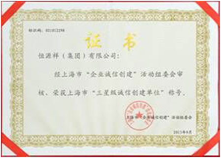 近日,經(jīng)上海市“企業(yè)誠信創(chuàng)建”活動組委會審核,恒源祥(集團)有限公司榮獲上海市“三星級誠信創(chuàng)建單位”稱號。(集團黨委■報道)